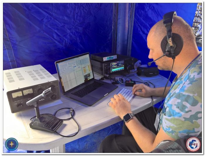 In ceea ce priveste statia de HF, am avut un ICOM IC-7610 si un amplificator Tokyo HyPower HL-1K cu o antena verticala multiband instalata pe sol cu 20 de radiale de 5m fiecare dispuse in stea. Am avut ocazia sa folosim si Winlink cu un modem SCS-Pactor P4dragon DR-7400 cu care am transmis e-mail-uri de la Tabara IDP cand ni s-a cerut de catre comanda acesteia. Un email cu un fisier PDF atasat, de aproximativ 64kb a fost transmis in circa 3 minute.