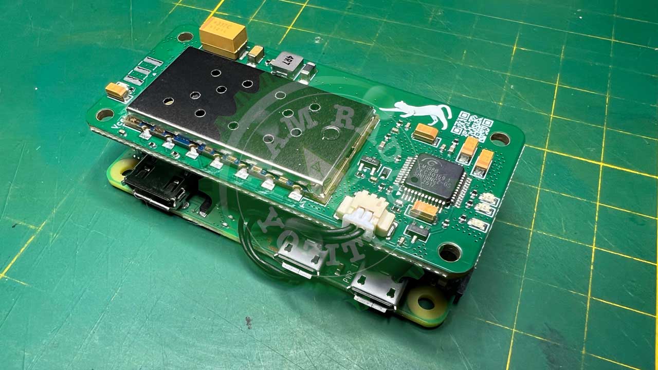 Pe acestea, plus mufa SMA, le-am lipit eu. Plăcile au funcționat fără probleme cu excepția unor interferențe în spectrul audio