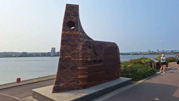 În anul 2025, aflat într-o călătorie în Regatul Unit, am poposit la Cardiff, capitala Wales. În cursul unei plimbări pe digul care protejează Golful Cardiff am descoperit un monument foarte interesant de forma unui aparat de radio.