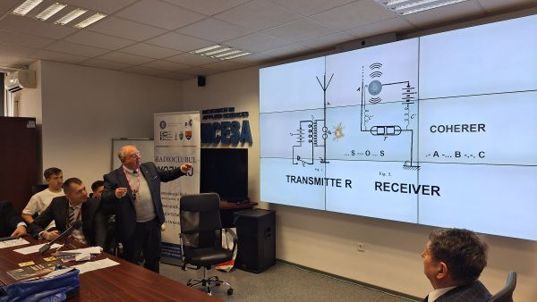 Prof. Livio SPINELLI, Director al Parcului ștințiific Guglielmo Marconi, Santa Marinela – ROMA. O prezentare și un film documentar foarte interesant inclusiv reconstituirea, în laborator, a unui model funcțional emițător cu scântei – receptor cu coherer