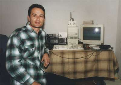 L-am vizitat si pe Dimko, Z32DR, unul din cei 3 radioamatori care m-au asteptat in toiul noptii cand am sosit cu trenul in Macedonia. Dimko este in serviciul administratiei sociale. Fratele sau Sasho, Z32FC lucreaza in Franta la Consiliul Europei. Dimko este un constructor, lucreaza DX si are peste 250 de tari confirmate. Foloseste CW si SSB si numai 10 W in concursuri. Este unul din putinii amatori macedoneni care isi produc logurile cu calculatorul. Are o antena ground plane pentru 15 metri, iar pentru concursuri ridica temporar un delta loop. Are un QSL frumos si managerul lui este acelas Aco, DJ0LZ, care administreaza QSL-uri pentru multi amatori macedoneni.