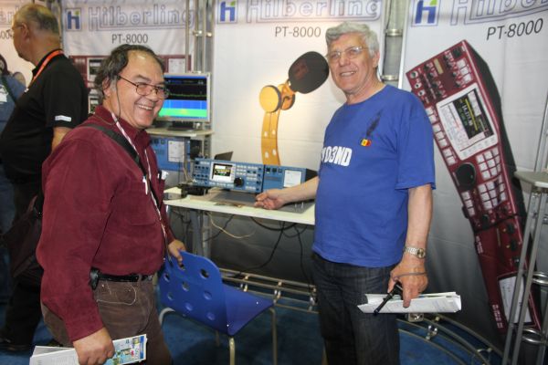 La un moment dat, suntem chemati de Daniel sa venim in cladire, sa ne prezinte staff-ului de la YAESU. Asa am ajuns sa-i cunosc si sa facem poze cu baietii de la cunoscuta firma. Am avut ocazia atunci sa vad si ultima lor realizare, nemaipomenitul FT DX 9000. Nu l-am "butonat" dar m-a impresionat grozav cum arata si ce stie sa faca. O foarte placuta surpriza a fost intalnirea cu Chip Margelli - K7JA, cel din emisiunea lui Jay Lenno, aceea cu "Morse vs SMS". I-am spus ca am prezentat mereu copiilor de la YO3KPA acel clip in care el si partenarul sau ii intrec pe cei cu SMS. De fapt, intreceri de genul acesta a fost reluate in mai multe tari si mereu au invins cei ce foloseau Morse, un sistem folosit de peste 150 de ani.