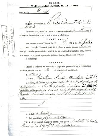 Ianuarie 1929. (Figura 8), la Tribunalul Arad, Secţia a III-a
