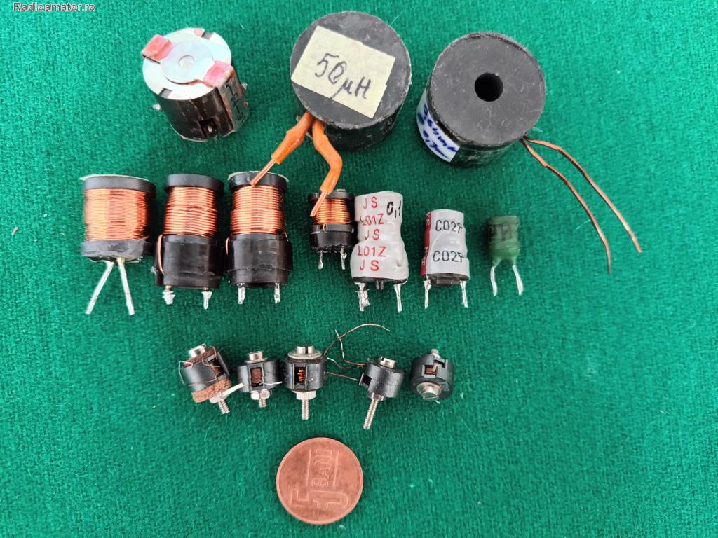 Randul 1 - Bobina pe oala ferita Ǿ17x15 mm. L= 1, 1mH. - Bobina pe oala ferita Ǿ22x19 mm. L= 50µH - Bobina pe oala ferita Ǿ23x17 mm L= 0, 65 mH Randul 2 - Bobine pe mosor de ferita 7 buc. : ... Continuare | ||