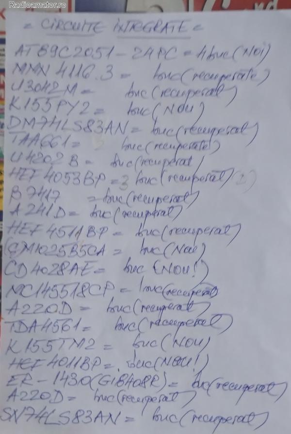 Placa A cu pasive - 20 lei Placa B cu active (2 tr. germaniu) - 15 lei Placa C cu active (9 tr. germaniu) - 30 lei Placa D cu active (20 tr. germaniu) - 60 lei Taxe postale: + 20 lei - livrare colet ... Continuare | ||