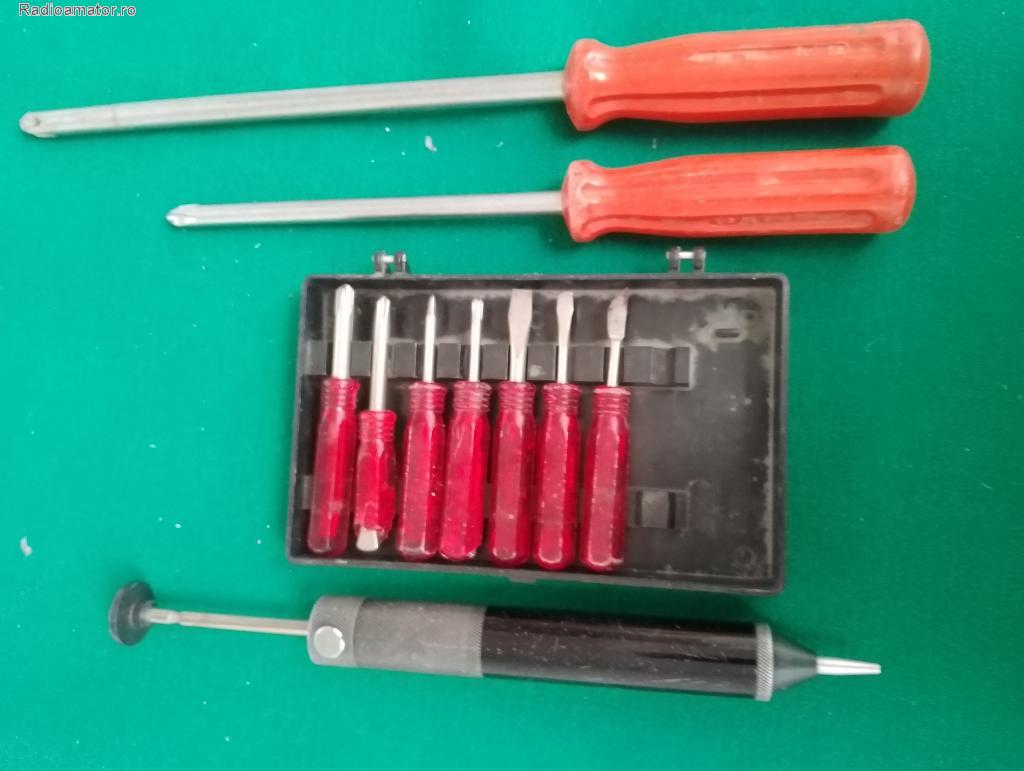 - Pompa cositor 20 lei. - Set 7 surubelnite : cap cruce Ǿ3, 5 , Ǿ5 si Ǿ6 mm cate 1 buc., + varf lat 5 mm si 7 mm. cate 1buc. +varf ascutit 1 buc +spatula 1 buc. Doua dintre surubelnite au cate o mica coibitura la extremitatea manerului. Peretul setului este 5 le ... Continuare | ||