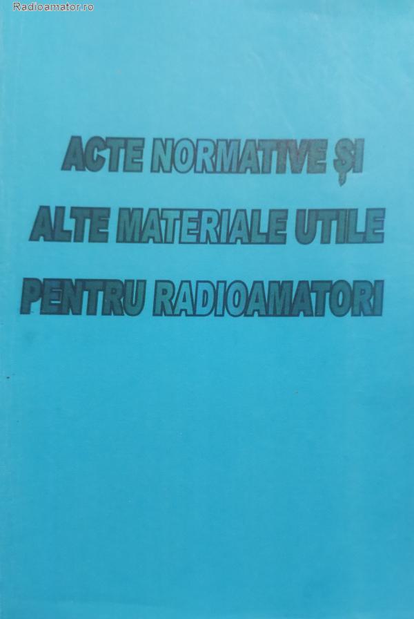 | Vand brosura contind acte normative si reglementari pentru radioamatori. Brosura cupride ultima editie a regulamentului, NTS, norme si proceduri de trafic, traficul de primejdie, sanctiuni aplicabile ptr nerespectarea regulamentului, alfabetul fonetic si morse, codul q. ... Continuare | ||