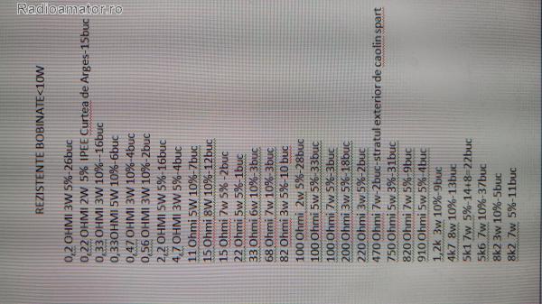 Rezistentele sant de 300Ohmi, 5% DINA3. Pret 10 lei/buc, 6buc/50 lei ... Continuare | ||