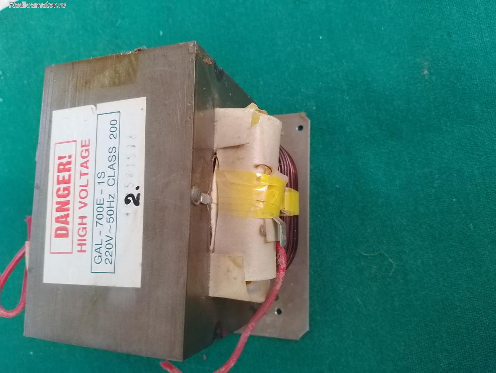 Vand un transformator de H.T, primar 230V, secundar 2, 2kV(tensiune masurata in gol) + inca o infasurare de 3, 6V, cu conductor Ǿ=0, 8 mm.(max.1, 5A) sectiunea miezului 24 cmp. Primar sarma Ǿ= 1 mm, secundar Ǿ = 0, 4 mm (suporta cca. 350 mA. Diametrul sarmei de bobinaj masurat cu pre ... Continuare | ||