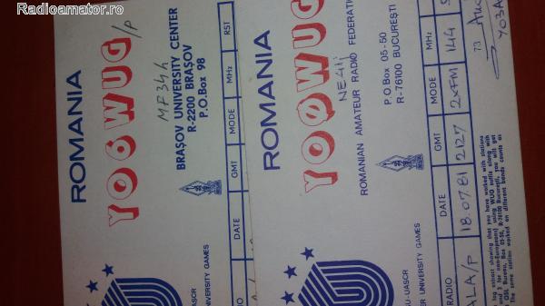 | Caut (contra cost sau schimb cu accesorii radio) QSL-uri ( preferabil seria intreaga YO2 - YO0WUG), statii speciale cu ocazia Jocurilor Mondiale Universitare Bucuresti 1981 ... Continuare