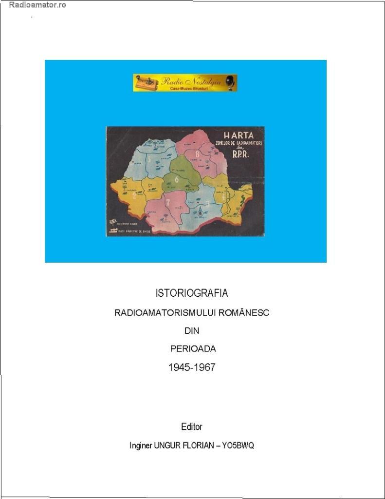 | Casa-Muzeu RADIONOSTALGIA-Brusturi/Sălaj anunță cu regret faptul că volumul ISTORIOGRAFIA RADIOAMATORISMULUI ROMÂNESC DIN PERIOADA 1945-1967 nu va putea fi tipărită în perioada următoare datorită lipsei fondurilor necesare și a sponsorilor (donatorilor) generoși.