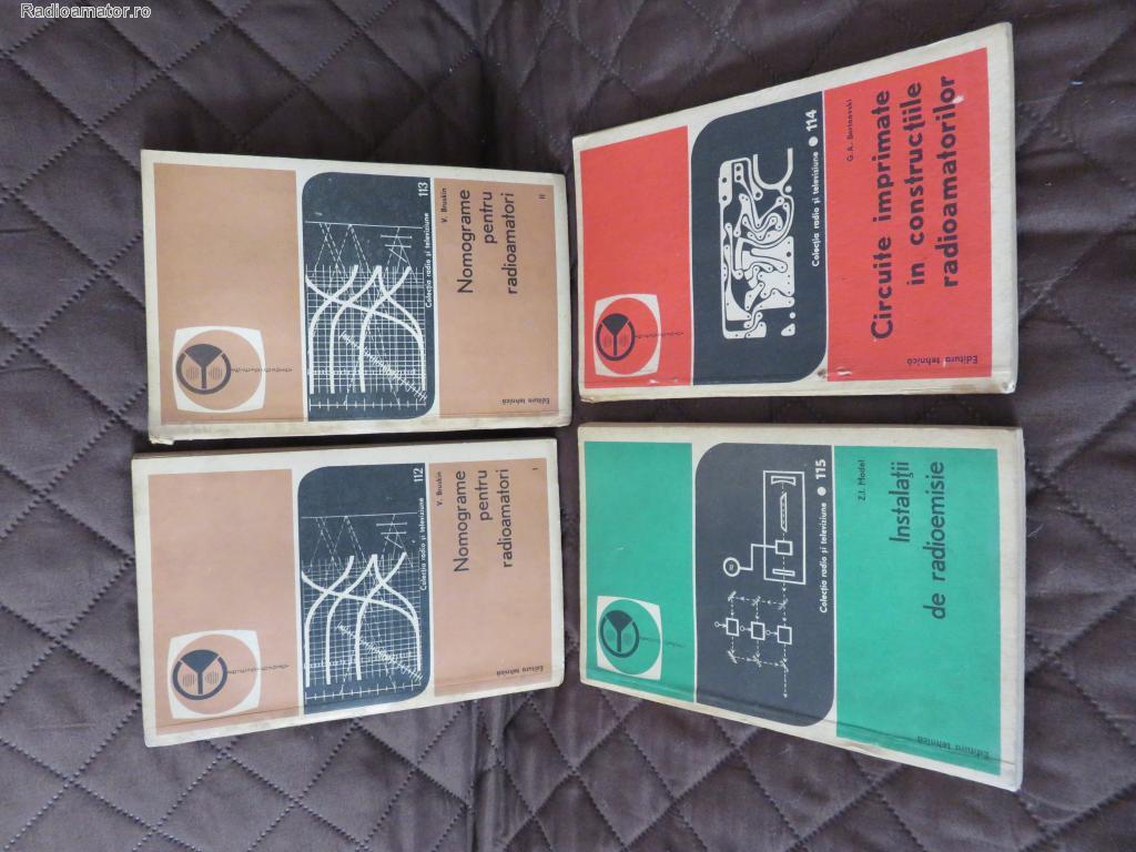Randul de sus: Nomograme pentru radioamatori – Volumul 1 si volumul 2 (ambele din 1973). Randul de jos: - Instalatii pentru radioemisie (1973); – S-A VANDUT - Circuite imprimate in constructiile radioamatorilor (1974). – S-A VANDUT Pretul: 15 LEI/buc. Telefon: 0771.260.463 73! Nini YO3CCC | ||