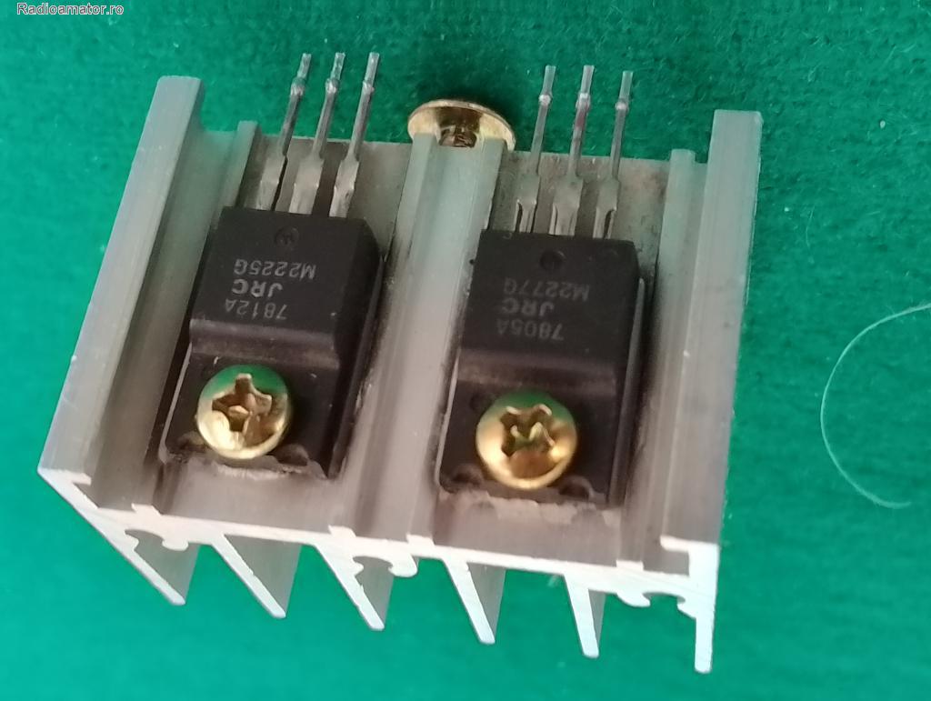Vand c.i. stabilizator 7805 + 7812, recuperate, functionale, montae pe un radiator din Al. cu aripioare, gabarit 40x28x26 mm. | ||