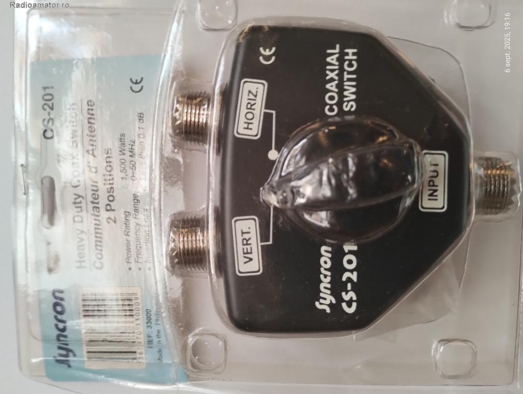 | Vand comutator coaxial antena cu 2 cai de intrare, nou,putere 1,5KW, impedanta 50 ohmi, frecventa 0-50 Mhz, pierderi sub 0,1 dB,conectori SO 239, made in Filipine. | ||