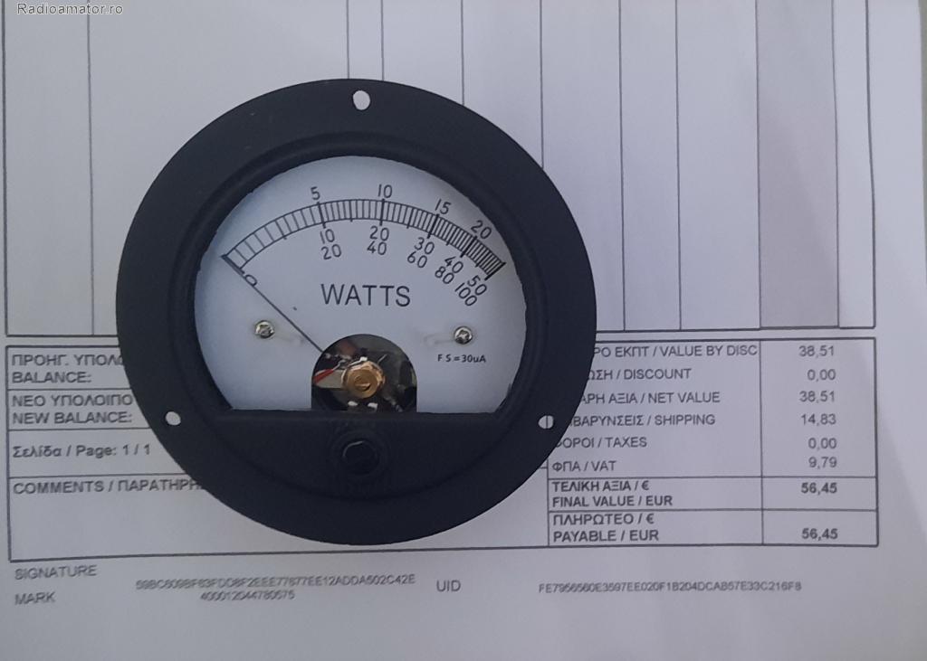 | Urmare a renunțării la un proiect, este disponibil un microampermetru 30 µA, destinat watmetrelor din seria Bird .