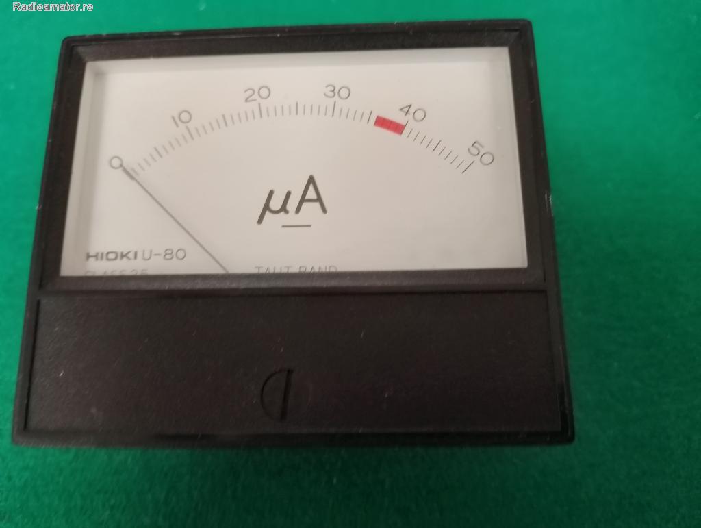 | Vand un µampermetru de 50µA, made in Japan , gabarit 80x68x40 mm, Ǿ51 mm la mecanism. Aparatul are inseriat ,exterior, demontabil, un dispizitiv de protectie la suprasarcina, ceea ce se intalneste destul de rar. Pretul este 75 lei.