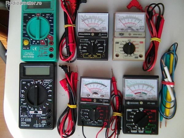 -PROSKIT 903-150N-B cu testere si baterie= 30 lei, -DT 830B cu testere si baterie= 30 lei, Analogic Multimeter: -PALLADIUM 822/213= 30 lei: DC= 10/50/250/500V, AC=10/50/250/500V, DC mA: 0,5/50/250mA, Rx 1K, cu testere, -EXTEL 213/2 BIS =30 lei: DC V:500/250/50/10V, AC V= 500/250/50/10V, DC 500 microA/50mA/250mA, Rx 1K,cu testere, -SUNWA YX-1000A =30 Lei, domenii de masurat identice cu instrumentul EXTEL,cu testerele montate, -MONACOR PT-150= 30 lei: DC V:1000/250/50/2,5V, AC V: 1000/250/50/10V, DC mA: 250/10, OHM x10/x1K, verifica baterii: 1,5V/ 9V, cu testere. | ||