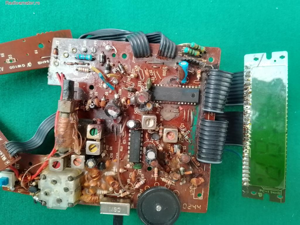 - Circuit integrat LM8560 -ceas digital cu comanda displayului - Display cu cristale lichide - Circuit integrat – pentru partea de radiofrecventa – tipul indescifrabil. - Antena de ferita - Condensatorul variabil - Potentiometru cu intrrupator –plantat pe placa - Comutator culisant cu 2 pozitii - Bobine ecranate cu miz ferita reglabil - 6 buc. - Puah-buton (cu revenire la a doua apasare) - Diverse componente passive. | ||