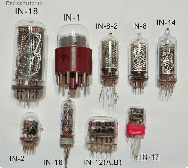 IN-1 - 40 lei/buc - stoc 8 SH IN-8-2 - lei/buc - stoc 0 IN-12A - 40 lei/buc - stoc 9 SH IN-12B (cu punct zecimal) - 40 lei/buc - stoc 13 SH IN-14 - lei/buc - stoc 0 IN-15A afiseaza urmatorele simboluri / litere: +, –, %, M, k, m, µ, n, P, П - 40 lei/buc - stoc 1 SH IN-15B afiseaza urmatoarele litere: W F Hz H V S Ω A - 40 lei/buc - stoc 3 SH IN-16 - 50 lei/buc - stoc 4 noi dar au lipsa terminalele punct zecimal stinga sau dreapta sau amble. IN-16 - 40 lei/buc - stoc 3 noi dar au lipsa terminalele cifrei 3 IN-16 - 50 lei/buc - stoc 6 SH IN-17 - 50 lei/buc - stoc 16 SH cu suport 1cm si terminale in plus fata de suport de 3-5mm *IN-19A - afiseaza К, М, Р, m, µ, n, %, °С - 30 lei/buc - stoc 1 SH *IN-19Б (B) - afiseaza T, A, Ω, Hz, S, F, H, V - 30 lei/buc - stoc 1 SH *IN-19B (V) - afiseaza —, A/B, ~, dB, +, , Π - 15 lei/buc - stoc 0 Socluri cu 12 pini, pentru tuburi Nixie IN-12 sau IN-15, pentru sasiu - 15 lei/buc - stoc 50 SH Suporti din plastic utilizati pentru NIXIE IN-14, IN8-2, IN-19 - 5 lei/buc - stoc 30 alb/galben/gri SH - grosime 5mm - 10 lei/buc - stoc 13 alb/galben noi - grosime 1cm Circuite integrate drivere pentru tuburi Nixie model K155ID1 si care este echivalent cu SN74141 K155ID1 - 20 lei/buc - stoc 35 noi. Transportul: + 20 lei - livrare colet la oficiu cu Posta Romana | ||